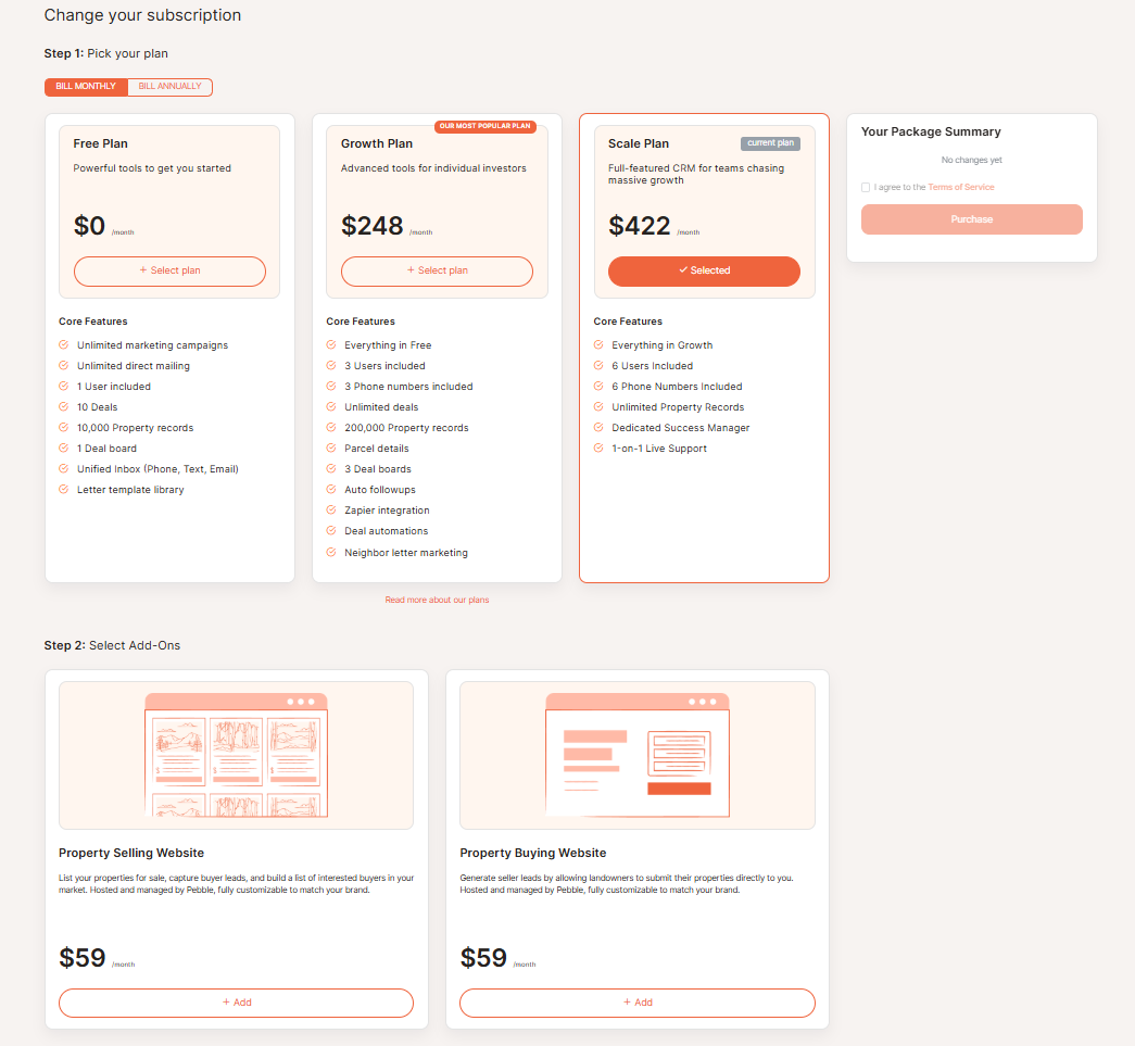 Pebble subscribers can change their subscription level, features, or billing arrangements to fit their changing needs. In this article, you will learn how you can change your subscription plan so you can pick the plan of your choice and select add-on features.