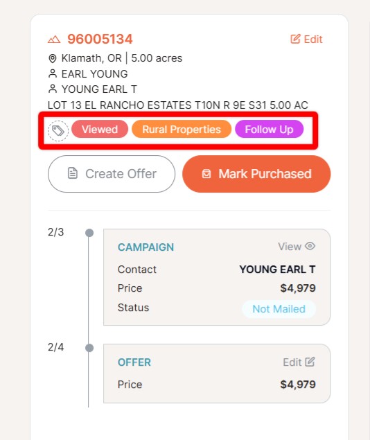 Tagging properties gives you the flexibility to categorize your properties. For example, mark properties for re-mailing or tag properties with a bad address. In this article, you'll learn how to tag properties, filter properties based on tags, and edit the existing tags.