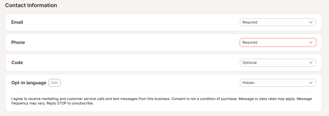 Note that one of the Contact Information fields is the Opt-in Language. This is a kind of message that you can use to inform people about what they're agreeing to once they fill in the form. You can also edit the text of this message by clicking the Edit button.