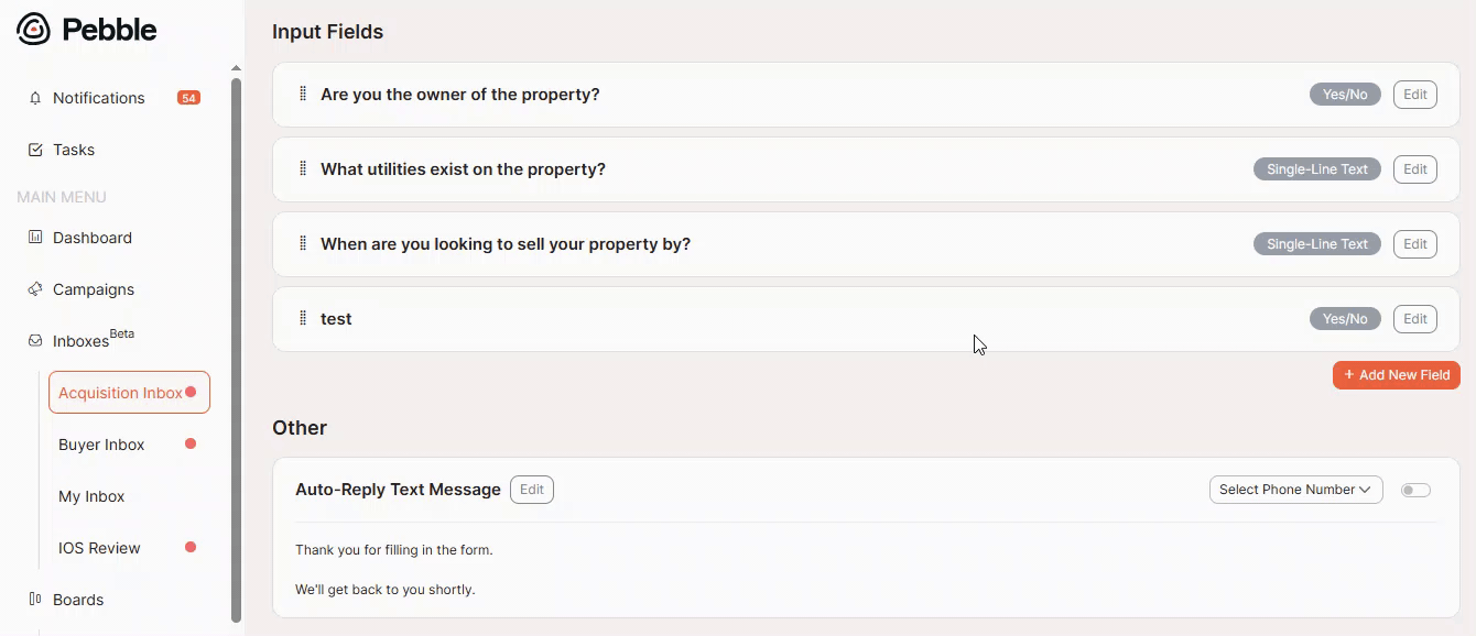 If you want to personalize it further, scroll down to the Input Fields section and click the + Add New Field button to add a new lead qualifying question.